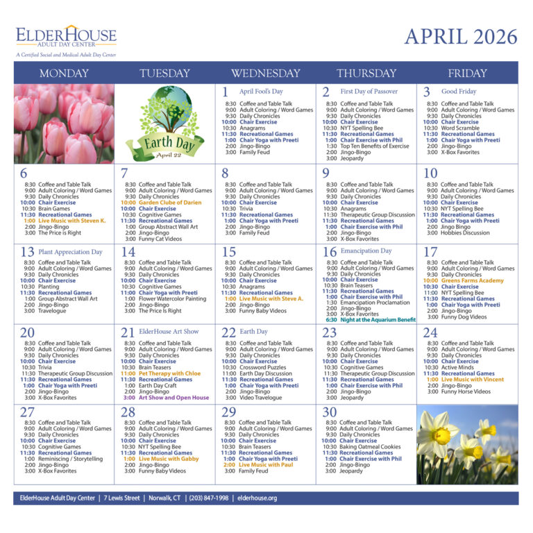 ElderHouse is the only 501(c)(3) not-for-profit certified adult day center serving Darien, New Canaan, Norwalk, Stamford, Weston, Westport, and Wilton. Your tax-deductible contribution supports critical programs and services for older adults and their families. There are many ways you can help: